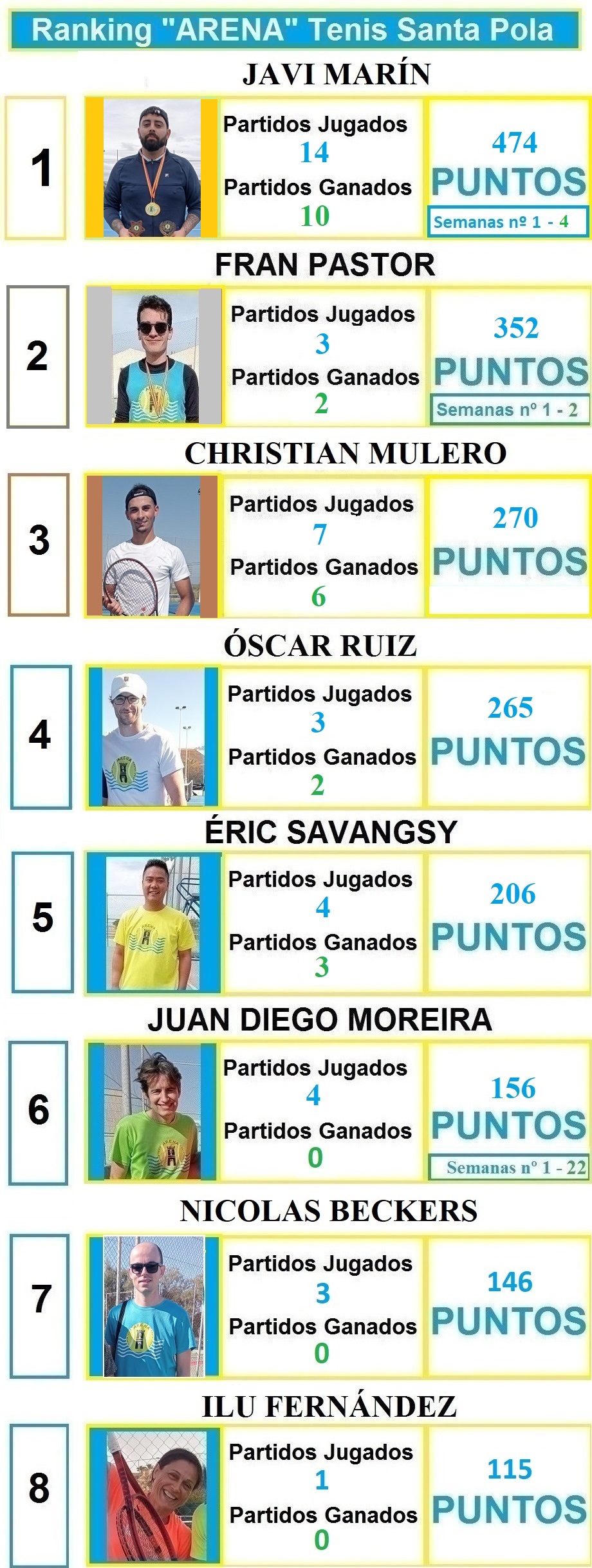 | 1 | Javi Marín | 199 | 137 | 62 | 14 | 10 | 4 | 21 | 12 | +9 | 140 | 122 | +18 |
