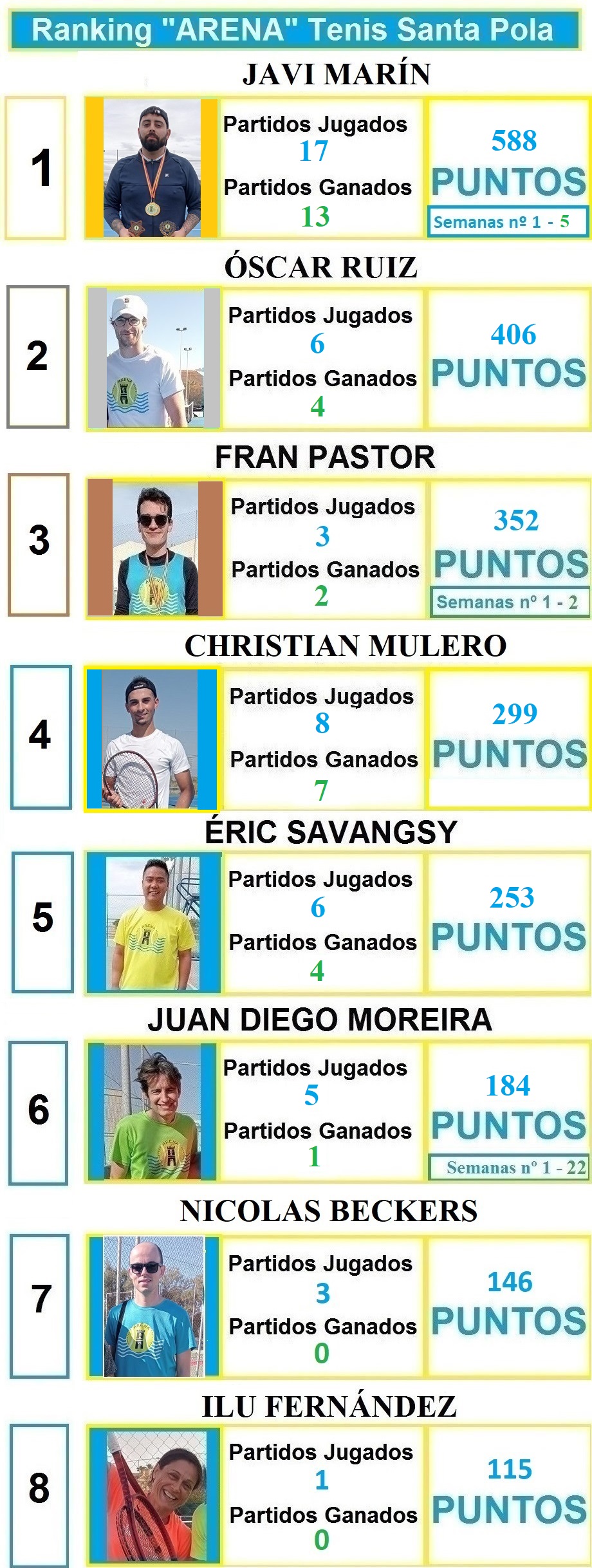 | 1 | Javi Marín | 199 | 137 | 62 | 14 | 10 | 4 | 21 | 12 | +9 | 140 | 122 | +18 |