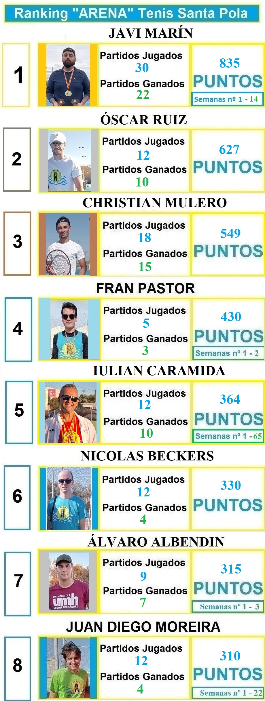| 3 | Óscar Ruiz | 139 | 95 | 34 | 9 | 7 | 2 | 15 | 5 | +10 | 101 | 63 | +38 |